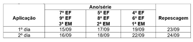 No caso de feriado municipal, as escolas podem utilizar os dias 23 e 24 de setembro para repescagem. Os gabaritos serão disponibilizados a partir do dia 25 de setembro.