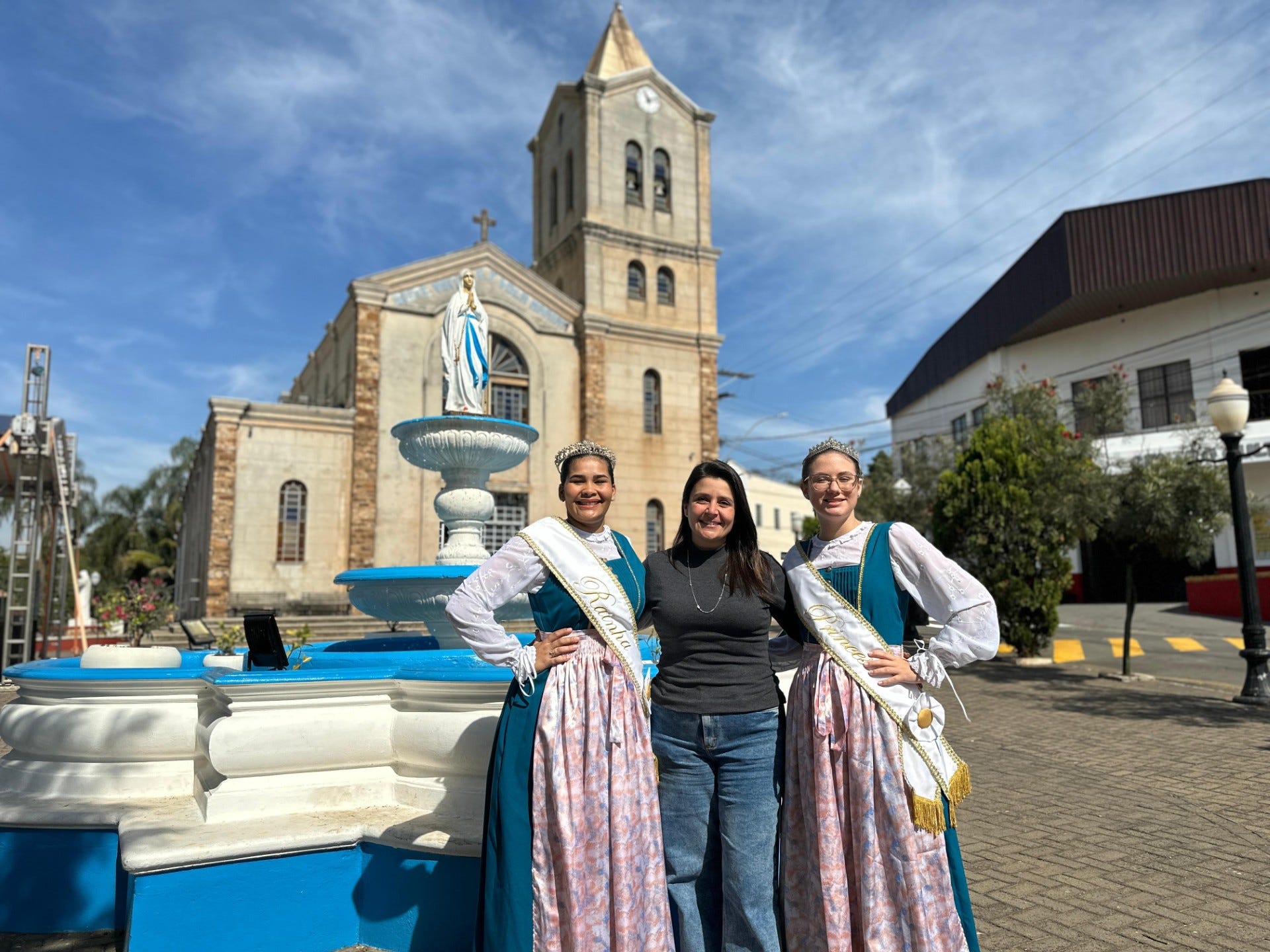 Clarissa Quiararia, secretária municipal de Turismo, entre Maria Heloisa Correr e Rafaely Fuzato, que são, respectivamente, a rainha e princesa da festa