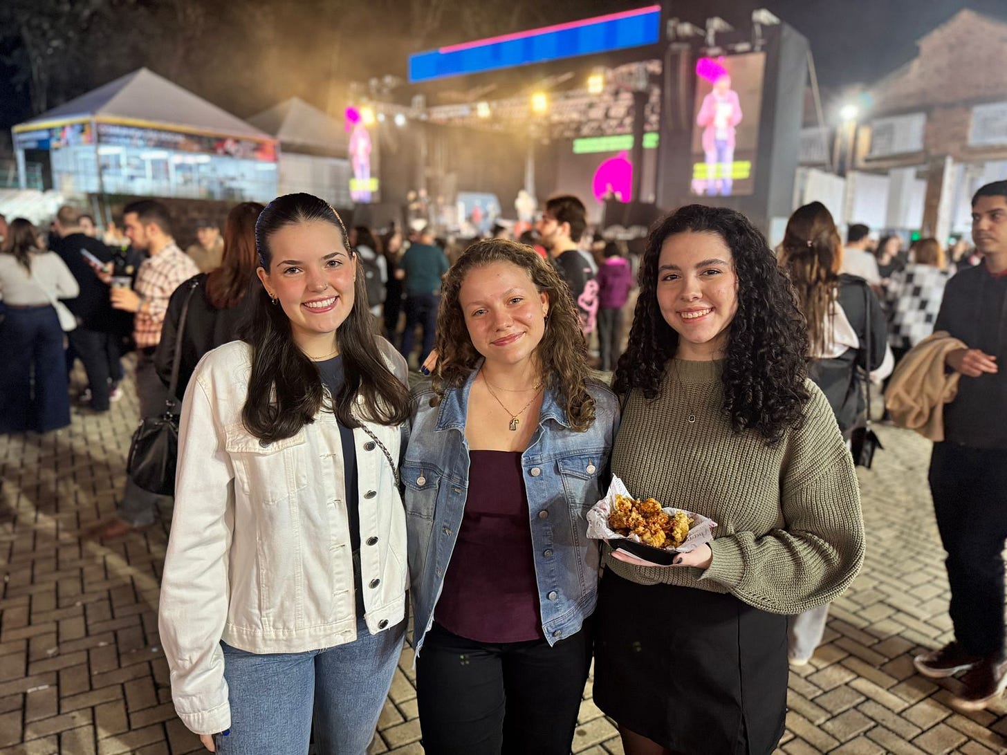 As amigas Juliana Rasera Piai, 18 anos, Helena Banov, 17, e Juliana Campos, 17 (foto acima), marcaram presença no segundo dia de Festa das Nações. “Gosto de vir com os meus amigos. A gente se diverte, experimenta as comidas que não conhecia de várias barracas e ainda aproveita para ajudar as entidades, que é o principal”, disse Juliana Rasera.