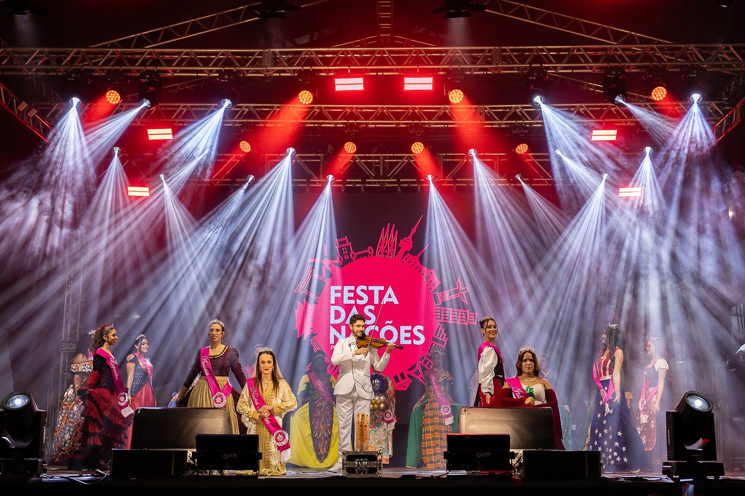 As Rainhas da 40ª Festa das Nações, que representam as 17 nações, se apresentam todos os dias no Palco Principal: às 20h, hoje e amanhã, e às 16h, no domingo, encerrando o evento. As bandas Máfia do Jazz e Mississipi Jazz Band farão apresentações itinerantes.