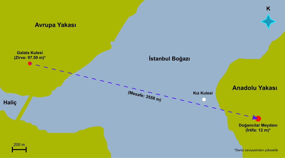 Ao chamar o sultão Murad IV para assistir à sua demonstração, que o governante decidiu acompanhar da sacada de um de seus palácios, no Cabo do Serralho. Ahmed teria voado da Torre de Gálata para o outro lado do Estreito do Bósforo, percorrendo por volta de 3.558 metros, impulsionado por ventos fortes, ele teria pousado na Praça Doğancılar no bairro de Üsküdar.