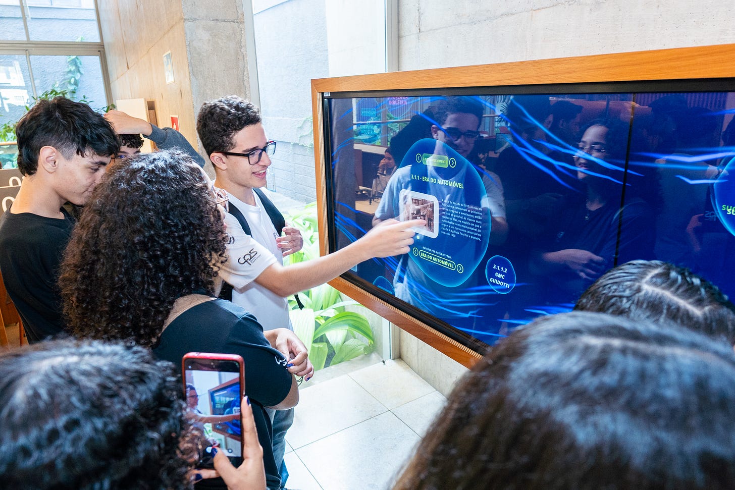 Espaço Digital do Memorial do Empreendedorismo, com os painéis de LED no hall de entrada do prédio da Acipi