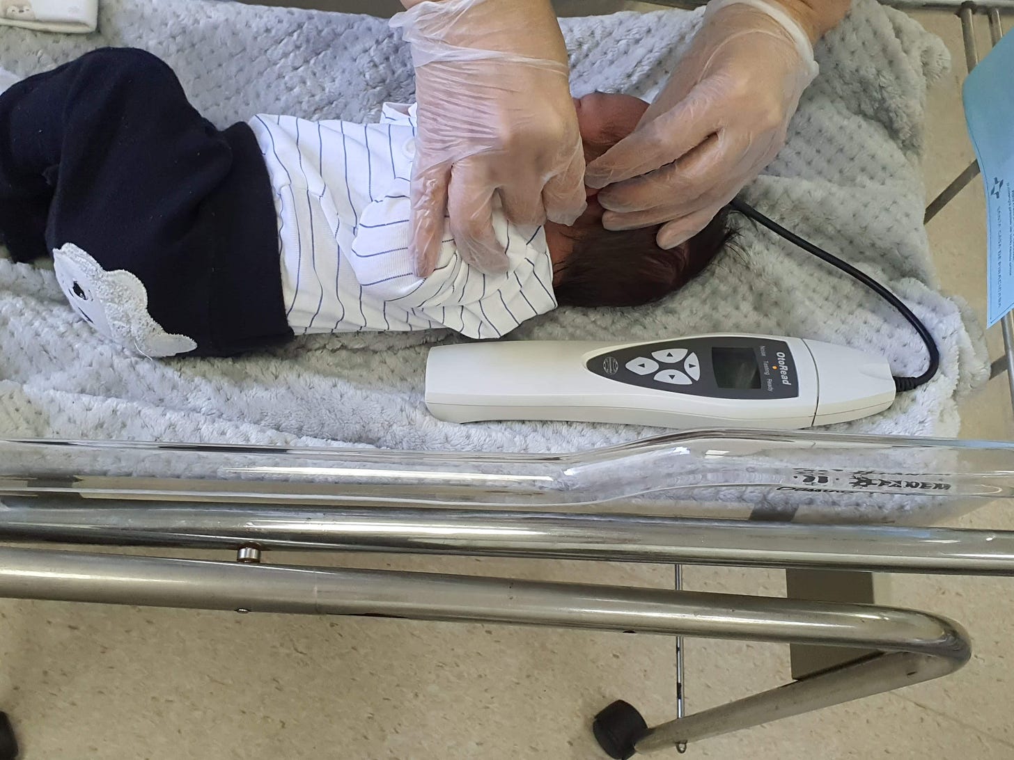 Teste da orelhinha feito ainda na maternidade da Santa Casa pela equipe da fonoaudiologia