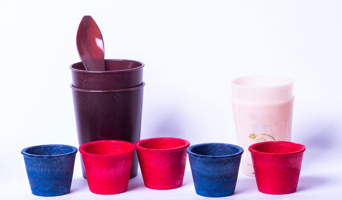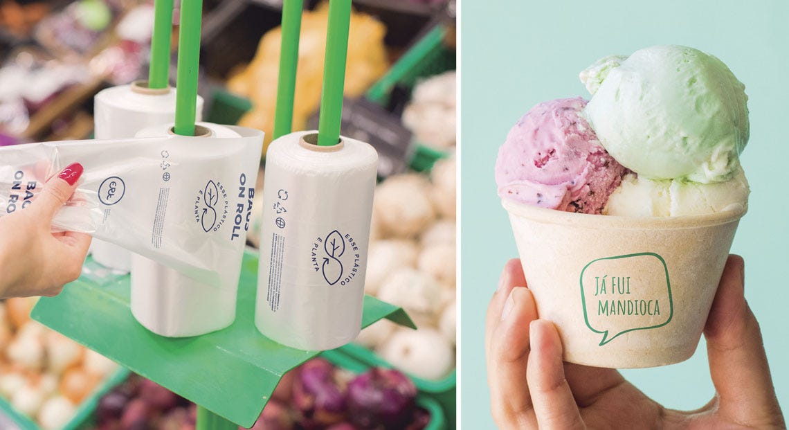 Empresas ampliam capacidade de produção de materiais à base de madeira, mandioca, açaí e resíduos agrícolas, já usados em copos e embalagens para alimentos