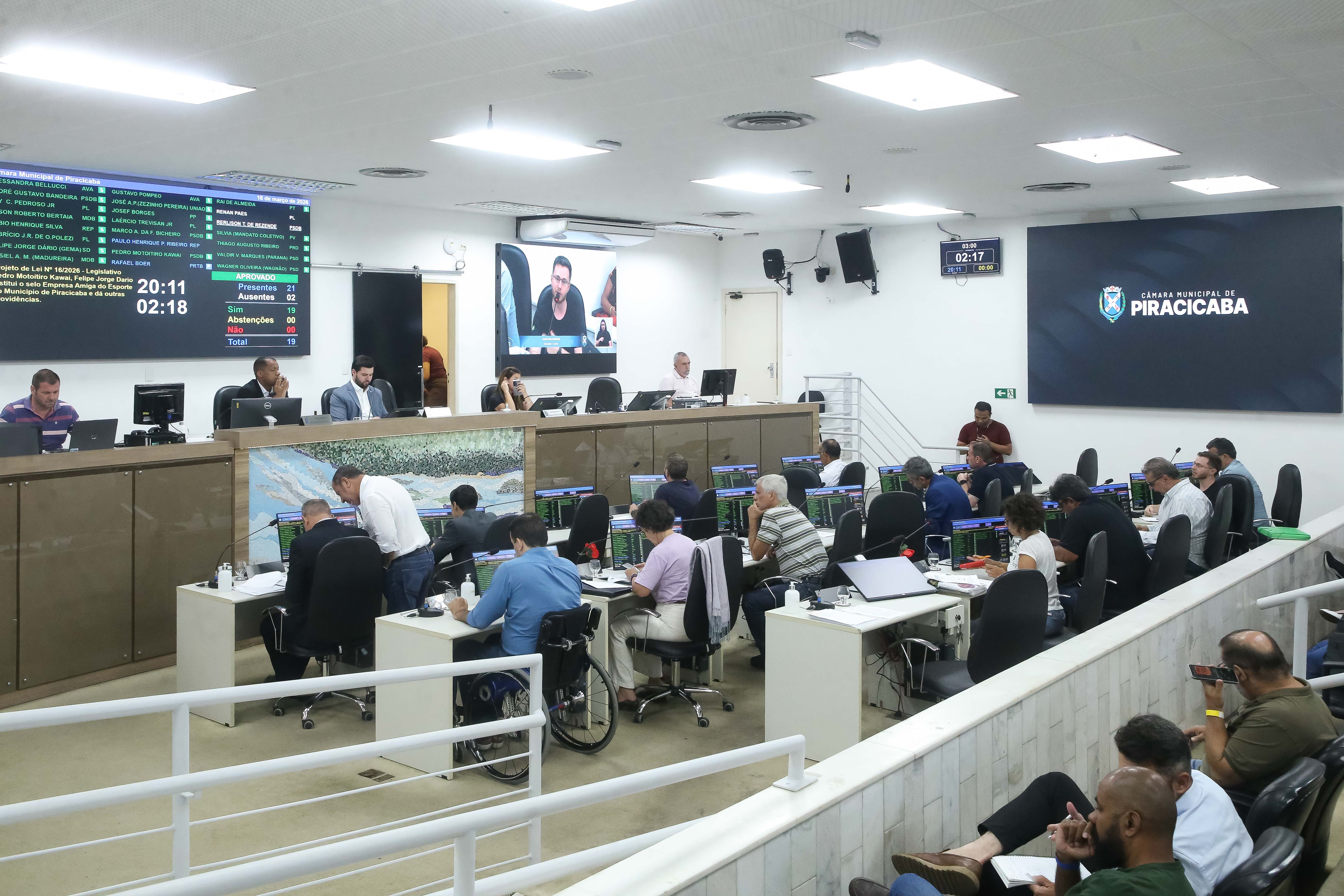 O projeto de lei 35/2026 está pautado para ser votado em primeira discussão na 5ª Reunião Extraordinária, que começará assim que terminar a 12ª Reunião Ordinária (esta com início às 19h). Se aprovada, a propositura passará por nova deliberação, definitiva, na 6ª Reunião Extraordinária, na sequência da noite.