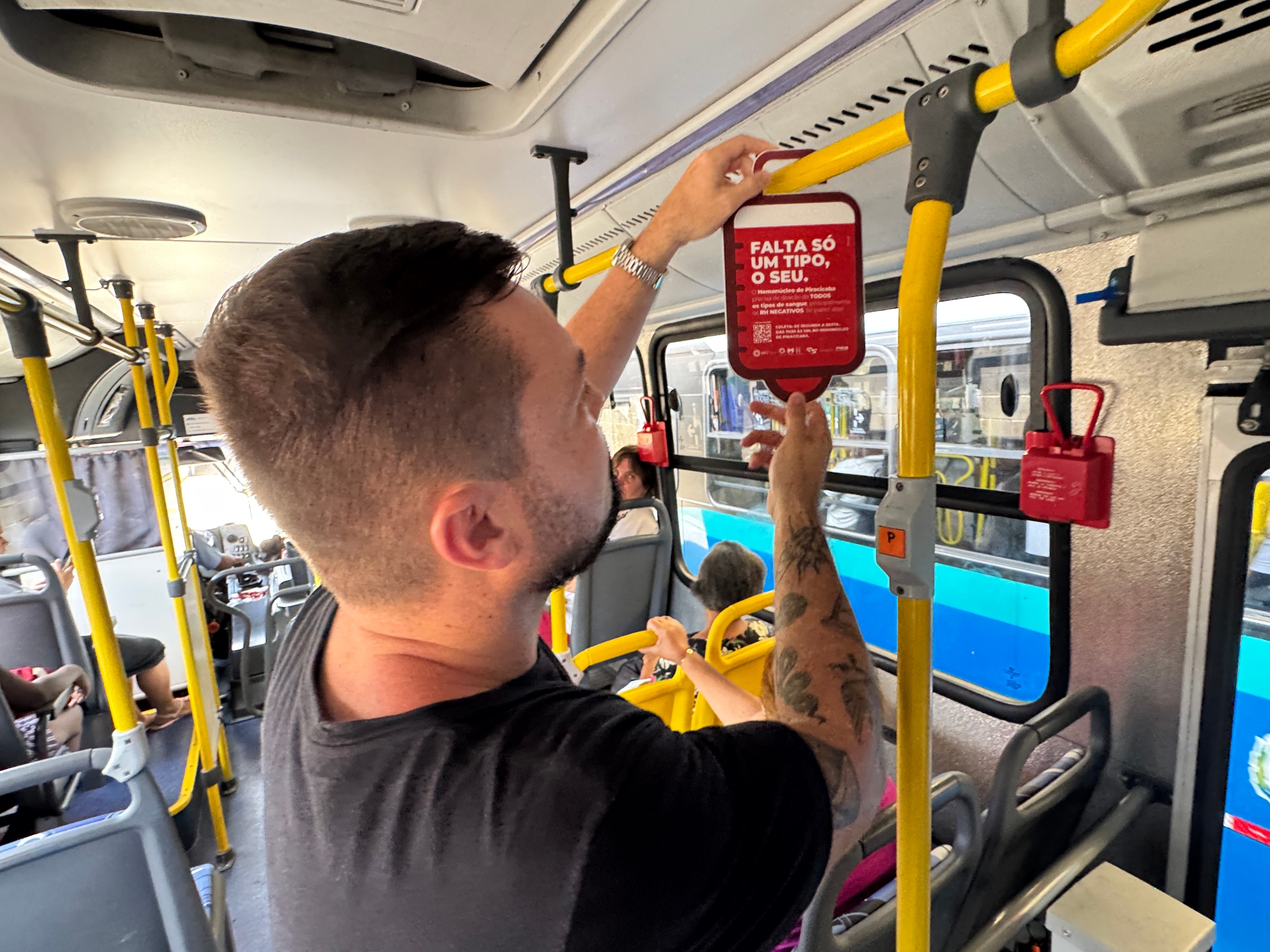 A iniciativa aposta em uma intervenção criativa e de forte impacto visual: peças em formato de bolsas de sangue foram penduradas nos corrimãos dos ônibus, simulando os suportes utilizados em hospitais. A proposta é chamar a atenção dos passageiros de forma direta e emocional, reforçando a mensagem de que muitas vidas dependem de um gesto simples e solidário.