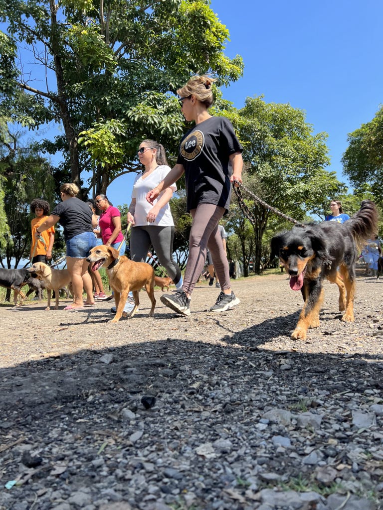Ação educativa com "cãominhada" reúne crianças e pets no bairro Parque Piracicaba