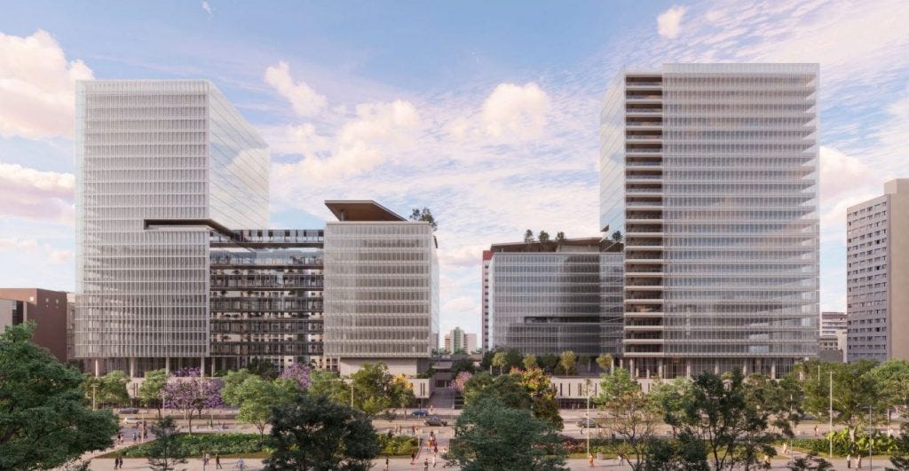 Os novos prédios terão certificação internacional LEED Gold e incluirão soluções de eficiência energética, térmica e ambiental. A estimativa é de geração de 38 mil empregos durante a fase de obras e 2,8 mil vagas formais no comércio e serviços locais.