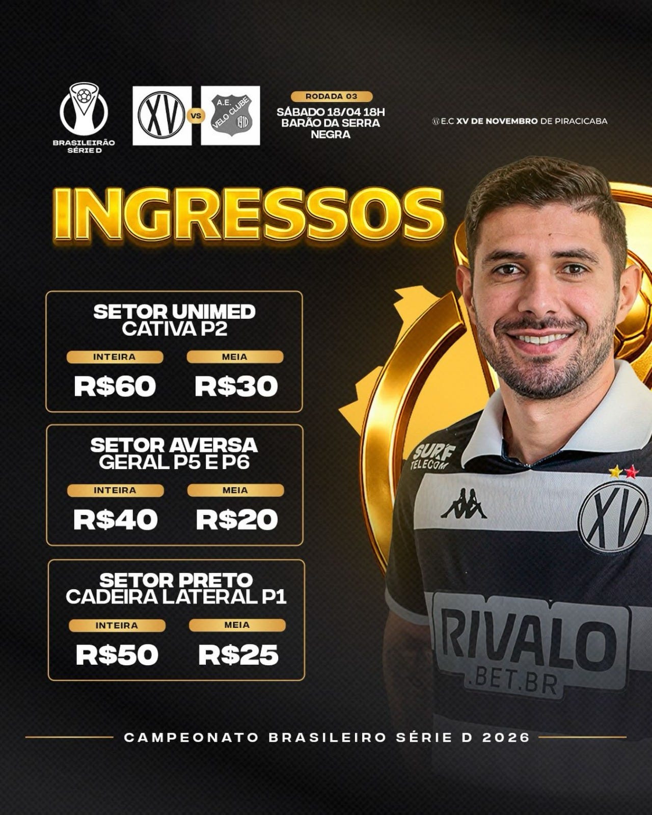 A partida em Piracicaba é válida pela terceira rodada da primeira fase do torneio nacional, em que o Nhô Quim se encontra na vice-liderança do grupo A14