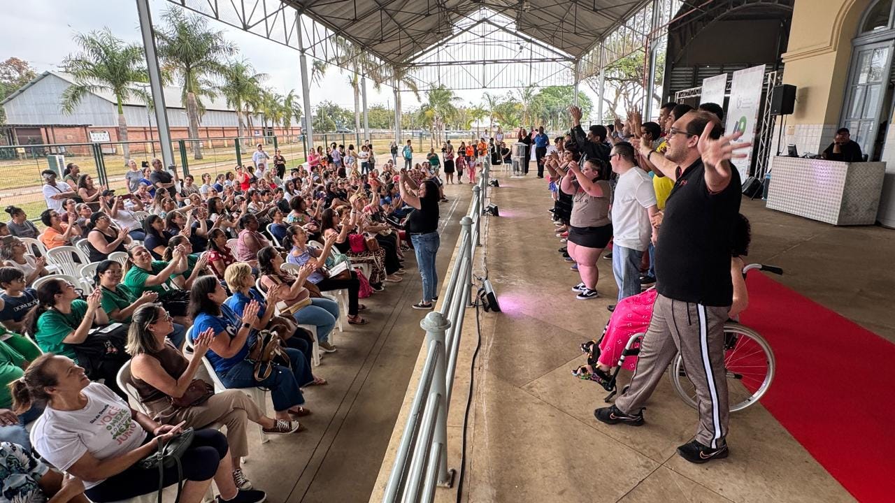 Alexandra Lutgens, 57, é mãe de um jovem de 24 anos com deficiência intelectual que é acompanhado pelo CRP desde os 4 meses. Ela destacou a animação do filho e afirmou que iniciativas como essa fortalecem o respeito e a inclusão.