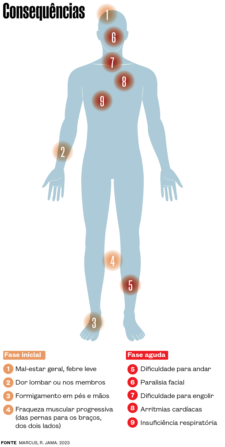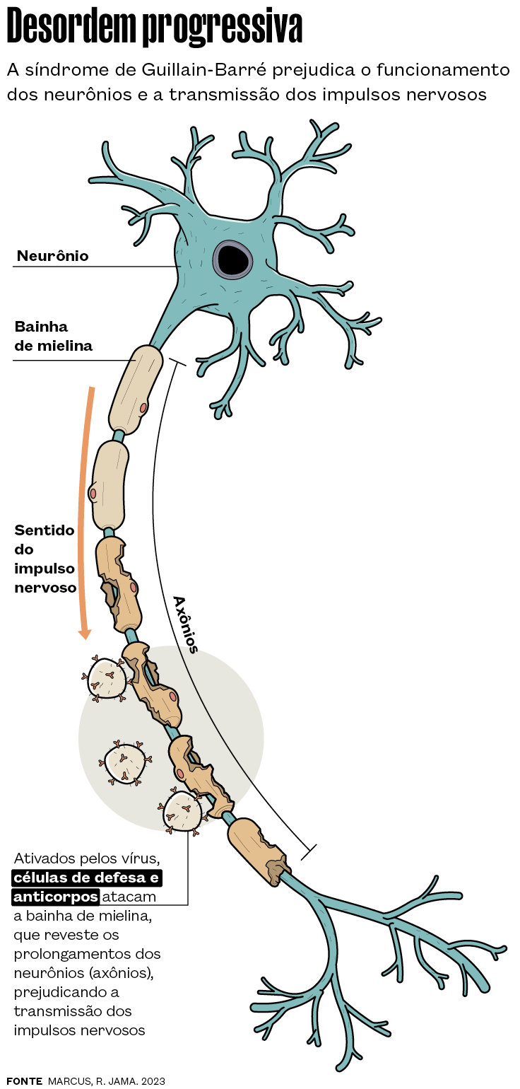 “A maioria se recupera sem maiores consequências”, observa Nogueira. A paralisia dos músculos respiratórios, que tende a ser fatal, acomete apenas 5% das pessoas com a síndrome identificada pelos neurologistas franceses Georges Guillain (1876-1961), Jean-Alexandre Barré (1880-1967) e André Stroh (1887-1977) e descrita pela primeira vez em 1916.