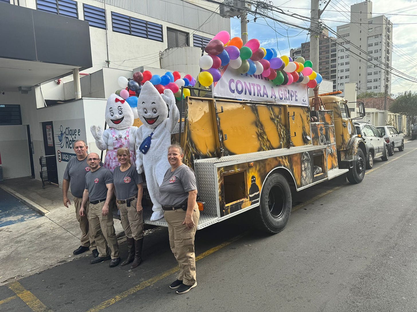 Para incentivar a população a se vacinar, durante o Dia D, o caminhão da Brigada de Emergência Municipal com os personagens Zé e Maria Gotinha desfilaram pelas ruas da cidade. Desde o início da estratégia de vacinação até o momento, foram imunizadas 30.703 pessoas.