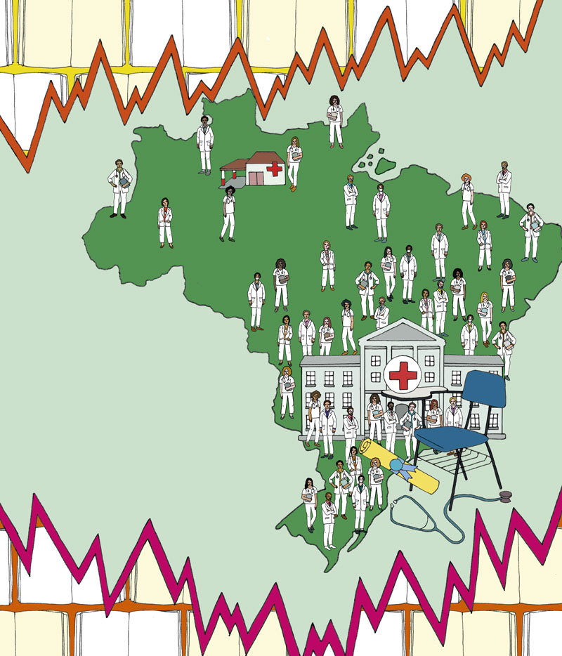 O programa mudou de formato em 2019, passando a se chamar Médicos pelo Brasil e se concentrando na contratação pela CLT de profissionais brasileiros em pequenos municípios do Norte e do Nordeste. Retomou o nome original em 2023 e começou a recrutar médicos por meio de bolsas. “É um modelo atraente porque as bolsas, na casa dos R$ 14 mil mensais, são pagas regularmente pelo governo federal. Nas versões anteriores, em que a remuneração era feita pelos municípios, havia muita queixa de atraso”, explica Santos, que está fazendo um estudo qualitativo com médicos vinculados ao programa atualmente. Foram entrevistados 11 profissionais em atividade no Nordeste e no Centro-Oeste. “Parte deles diz que participa do programa por idealismo. Outra parte é mais pragmática e elogia a estrutura oferecida – o município se encarrega, por exemplo, de lhes oferecer moradia”, afirma. “Reter esses profissionais a longo prazo ainda é difícil, mas tem havido médicos que permanecem como bolsistas por quatro ou cinco anos”, conta Santos.