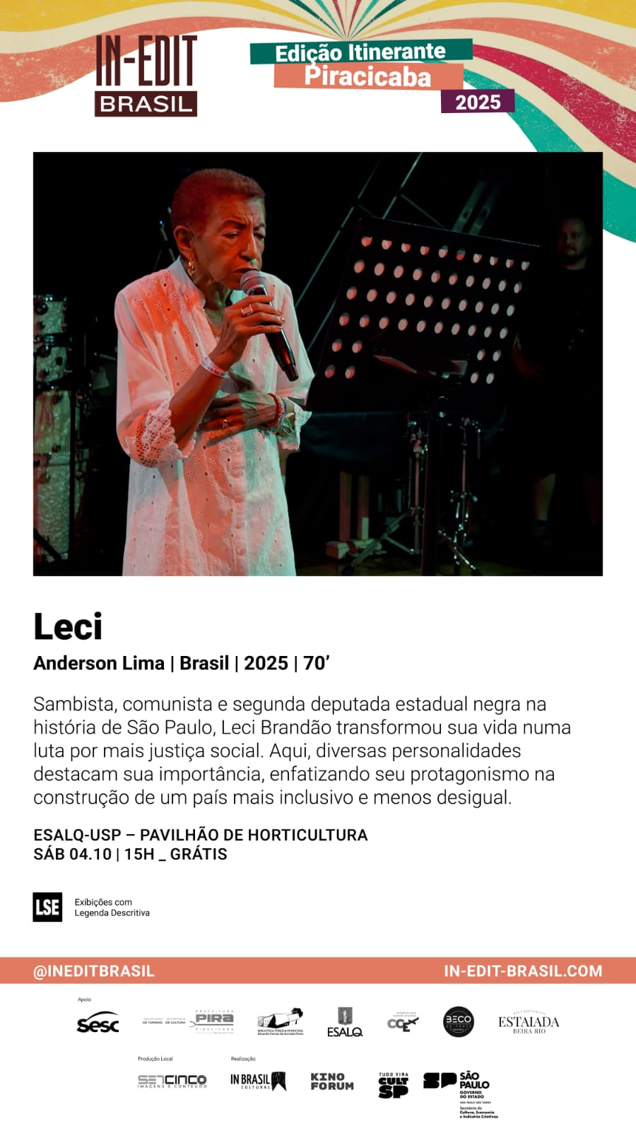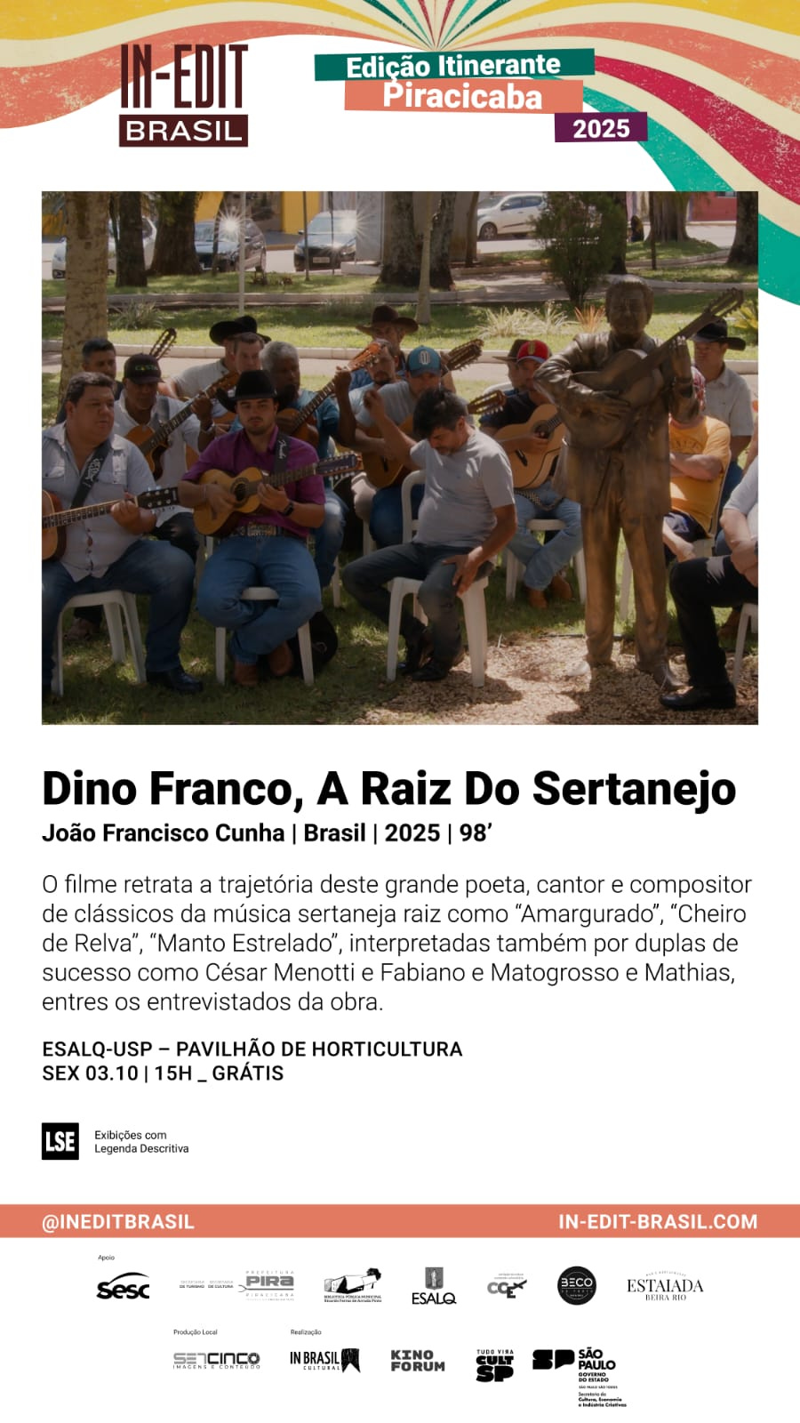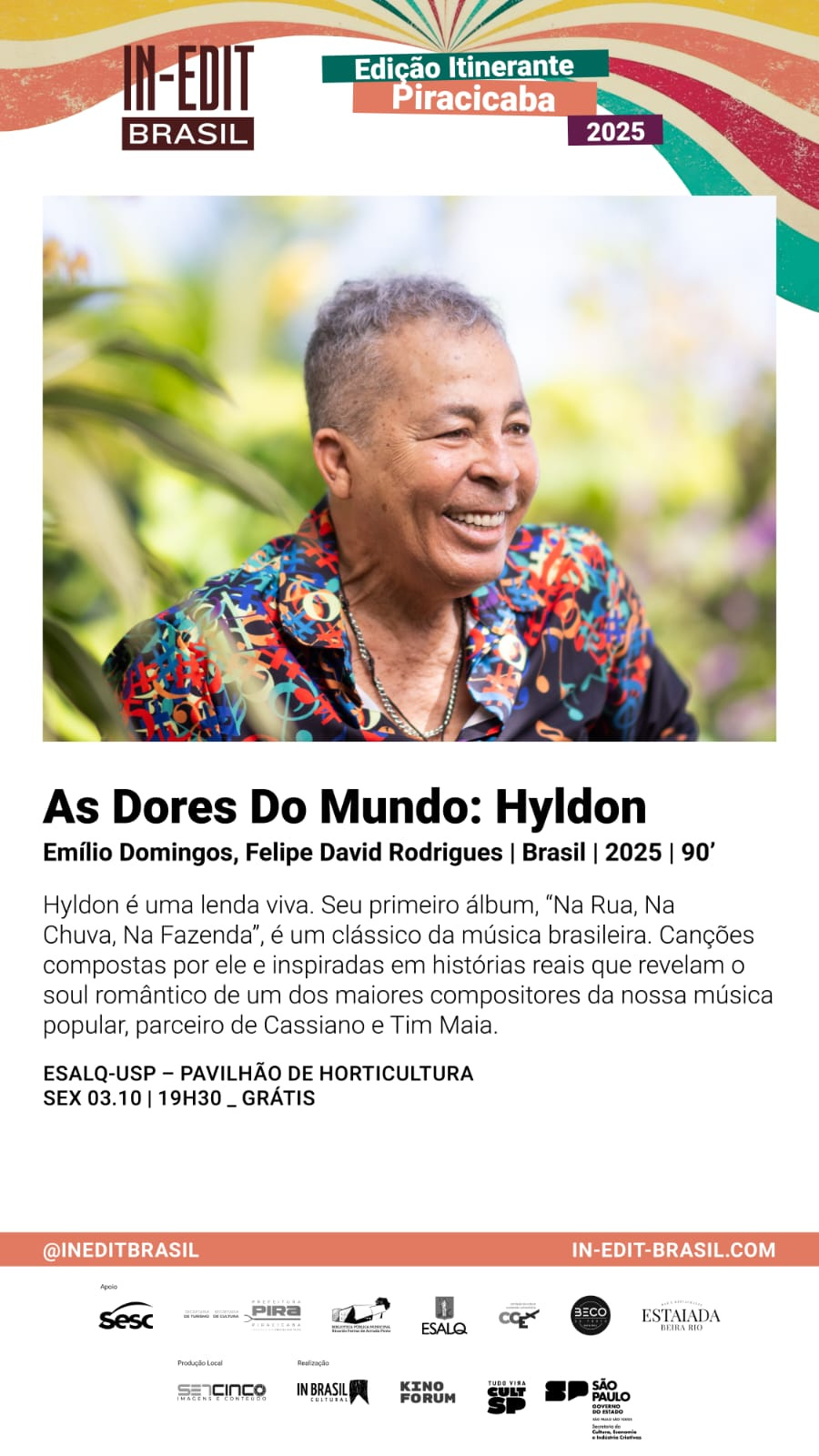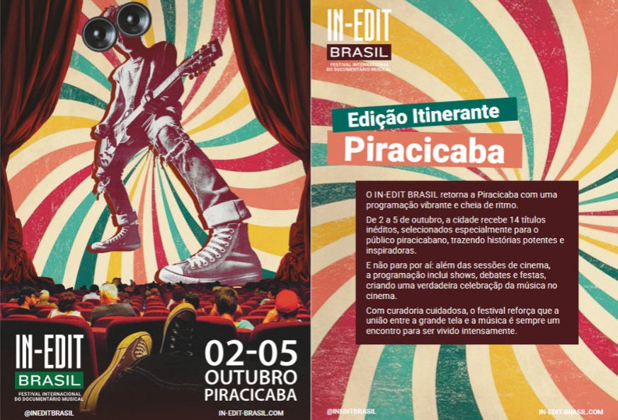 De 2 a 5 de outubro, Piracicaba recebe a edição itinerante do In-Edit Brasil – Festival Internacional do Documentário Musical, que traz 14 filmes inéditos, além de shows, debates e festas que celebram a união entre música e cinema.