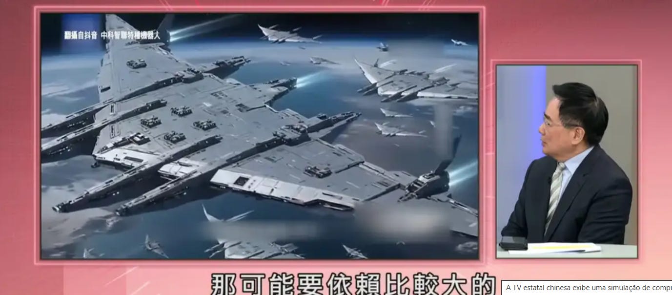 A China anunciou projeto de uma espécie de “porta-aviões espacial”, na terça-feira, 03 de fevereiro último. Mais propriamente uma “nave espacial de guerra”, batizada de “Luanniao“. A nave (se for mesmo construída) terá 242 metros de comprimento, 684 metros de largura e um peso estimado de 120 mil toneladas. A intenção é lançar caças não-tripulados e mísseis hipersônicos da órbita terrestre sobre alvos em terra.