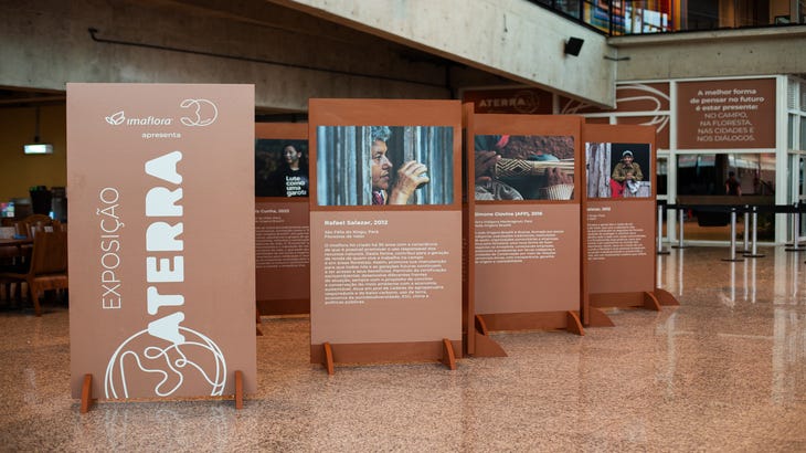 Na mostra, essa trajetória ganha forma em 30 painéis que revelam experiências, práticas e vivências de comunidades e territórios diversos, destacando a relação intrínseca entre sociedade e natureza.