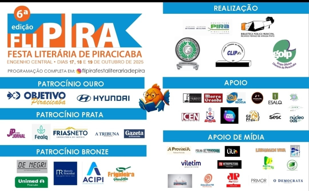 Falta uma semana para o início da 6ª. Festa Literária de Piracicaba (Flipira), no Engenho Central. A abertura será no dia 17 de outubro, no anfiteatro do Galpão 14 no Engenho, a partir das 10 horas, com palestra sobre Machado de Assis, a cargo do historiador e acadêmico Armando Alexandre dos Santos.