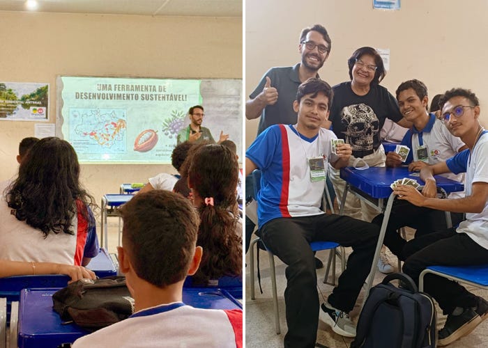 Segundo Rafael, o experimento piloto de aplicação do jogo ocorreu durante uma ação de extensão do Projeto Cena na Escola, realizada no município de Tomé-Açu, no Pará. “Esta escolha está relacionada ao nosso trabalho dentro do Projeto Agrobiofor (veja mais informações no site do projeto), no qual avaliamos a saúde do solo através de aspectos microbiológicos e físico-químicos em sistemas agroflorestais de agricultores cooperados da Cooperativa Agrícola Mista de Tomé-Açu (Camta), a fim de avaliar a sustentabilidade deste tipo de propriedade rural, observando seus impactos no solo e produção de alimentos”, explica o pesquisador,