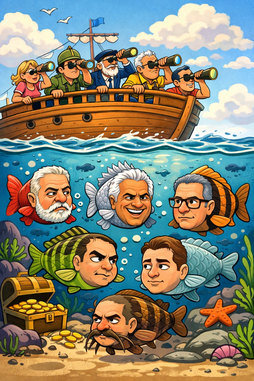 Caiado, Zema, Renan e Rebelo ainda não deixaram claro a que vieram. Kassab não é nenhum idiota, quando o assunto é poder e Caiado tem uma missão em seu jogo de cartas. Em que direção a nau das ilusões vai seguir? Um especialista me disse que o mar não está para peixe. Só Lula tem a certeza de que vai para o segundo turno. Mas nem sempre essa certeza é tão certa assim.