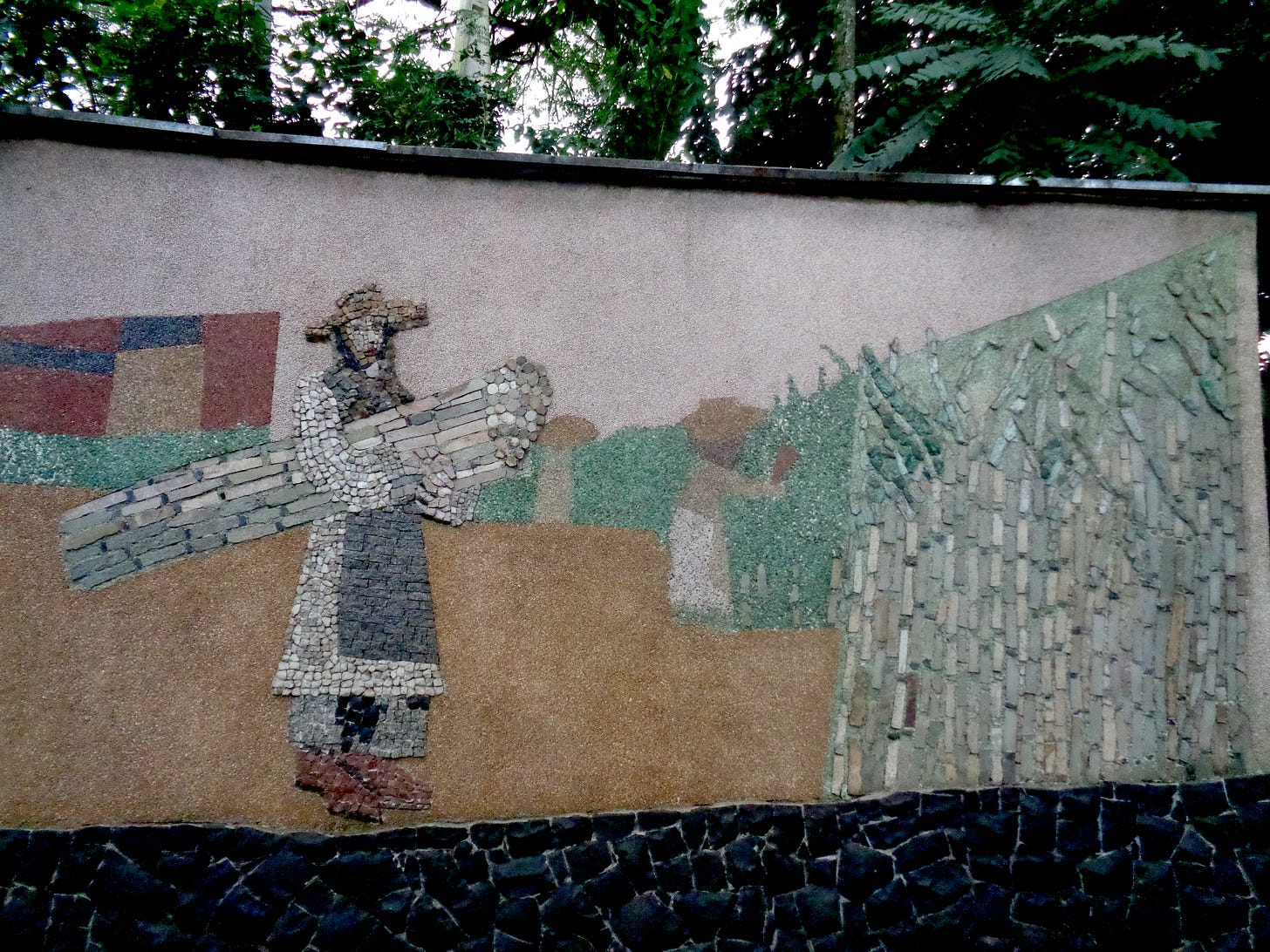 O mural, de autoria da artista plástica Clemência Pecorari Pizzigatti e vários de seus alunos da rede pública estadual, foi feito em 1978, durante uma greve de professores. Os alunos coletaram, a pedido de Clemência, as pedras que foram utilizadas para compor uma alegoria sobre a história de Piracicaba. A coleta resultou em 52 tipos diferentes de pedras.