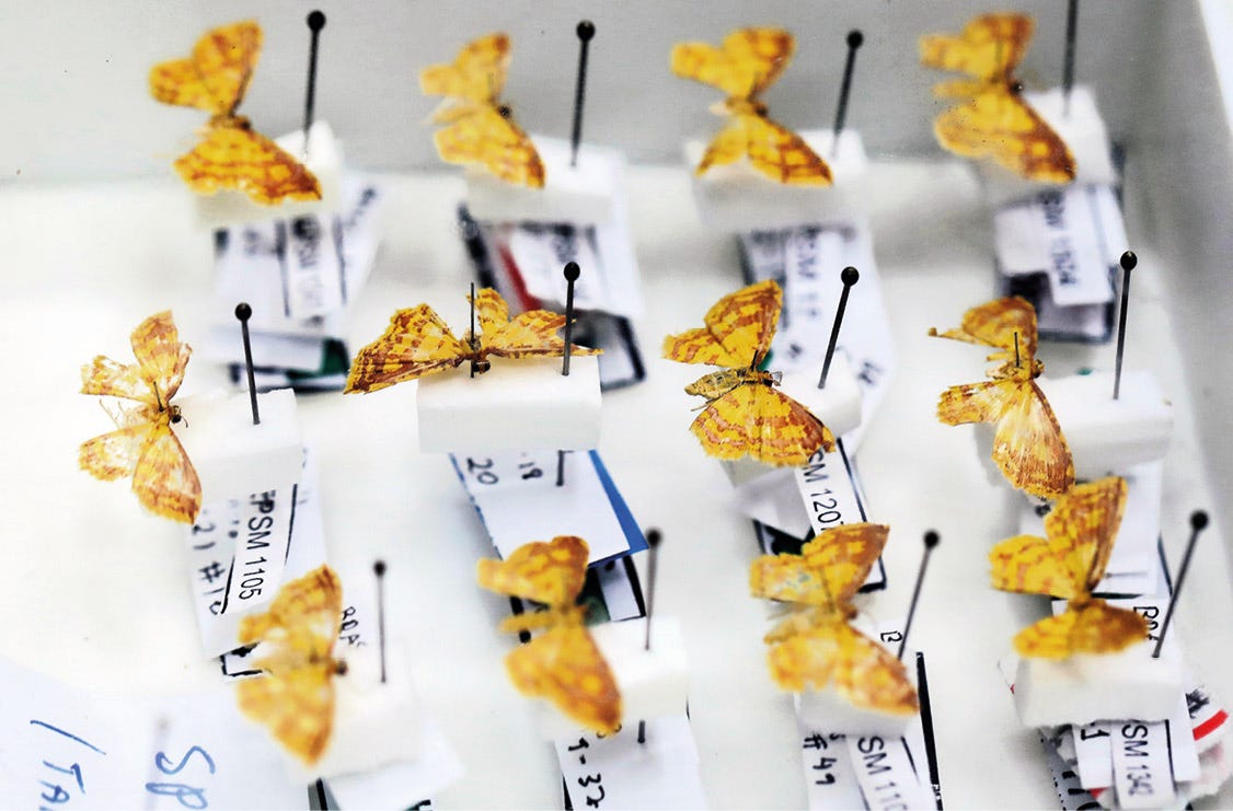 O esforço para descrever as espécies começou com a análise do DNA dos exemplares coletados, método menos detalhista que a taxonomia tradicional, que descreve a anatomia das espécies, mas que fornece uma estimativa de variação genética capaz de indicar, de forma rápida, se há ou não espécies diferentes no grupo. O que pareciam ser indivíduos E. russearia, na verdade, compunham um complexo de espécies muito parecidas entre si. O fenômeno não é incomum entre grupos hiperdiversos como as mariposas. Apenas o gênero Eois tem hoje cerca de 250 espécies descritas, sendo que 240 são encontradas em zonas tropicais. “Esse complexo da E. russearia é pequeno, mas existem outros dentro do gênero Eois com potencial de até 50 espécies novas”, aponta Moraes.