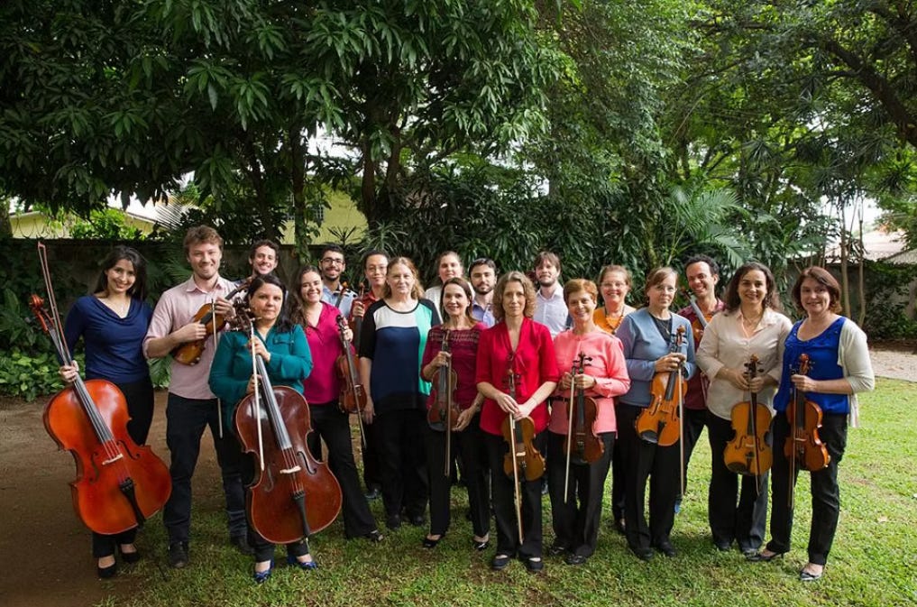 O grupo, que ensaia na Sociedade Filarmônica Lyra, em São Paulo, é formado por instrumentos de cordas como violinos, violas, violoncelos e contrabaixos, e realiza concertos regularmente.