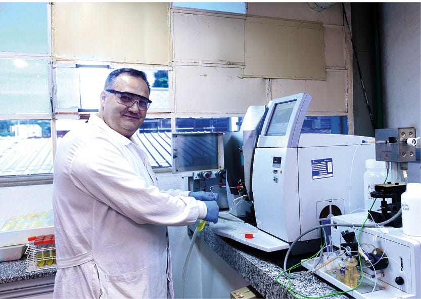 Para avaliar a fração bioacessível de minerais essenciais que poderá ser absorvida pelo organismo, que implica em estar solúvel ao final da digestão, Pereira utilizou modelo de digestão em laboratório (in vitro) que simula o que acontece no estômago e no intestino durante a digestão. “O experimento in vitro simula todas as fases da digestão humana, desde a mastigação, depois estômago e intestino, pra ver a fração solúvel. O que ficar solúvel é o que foi liberado do alimento e poderá ser absorvido”, explica Pallone.