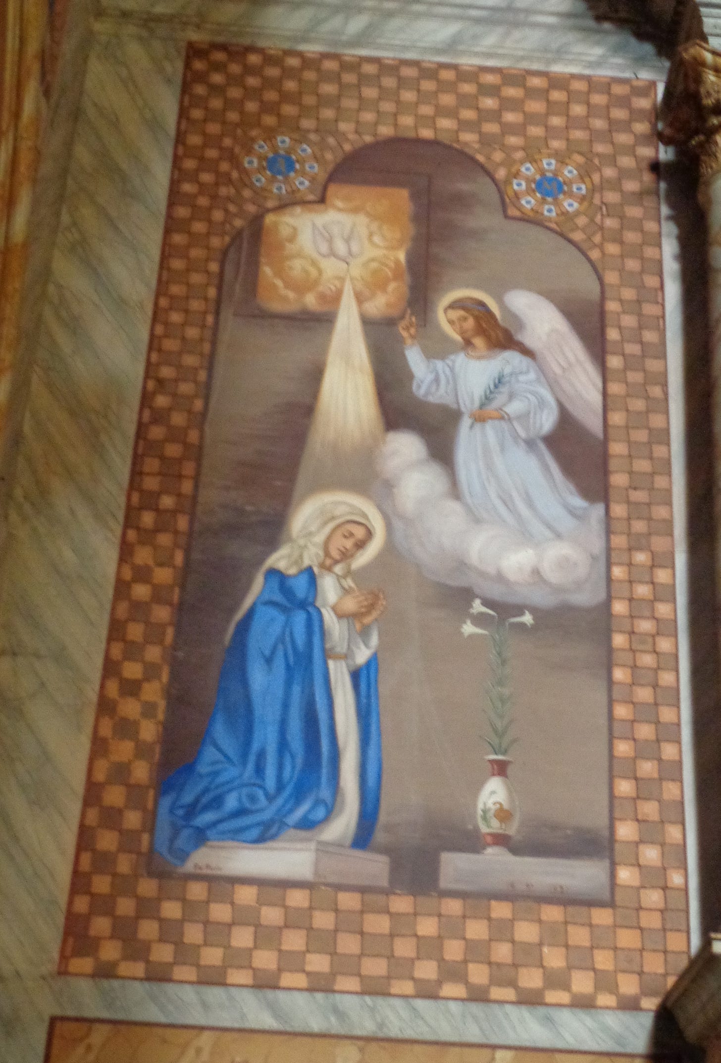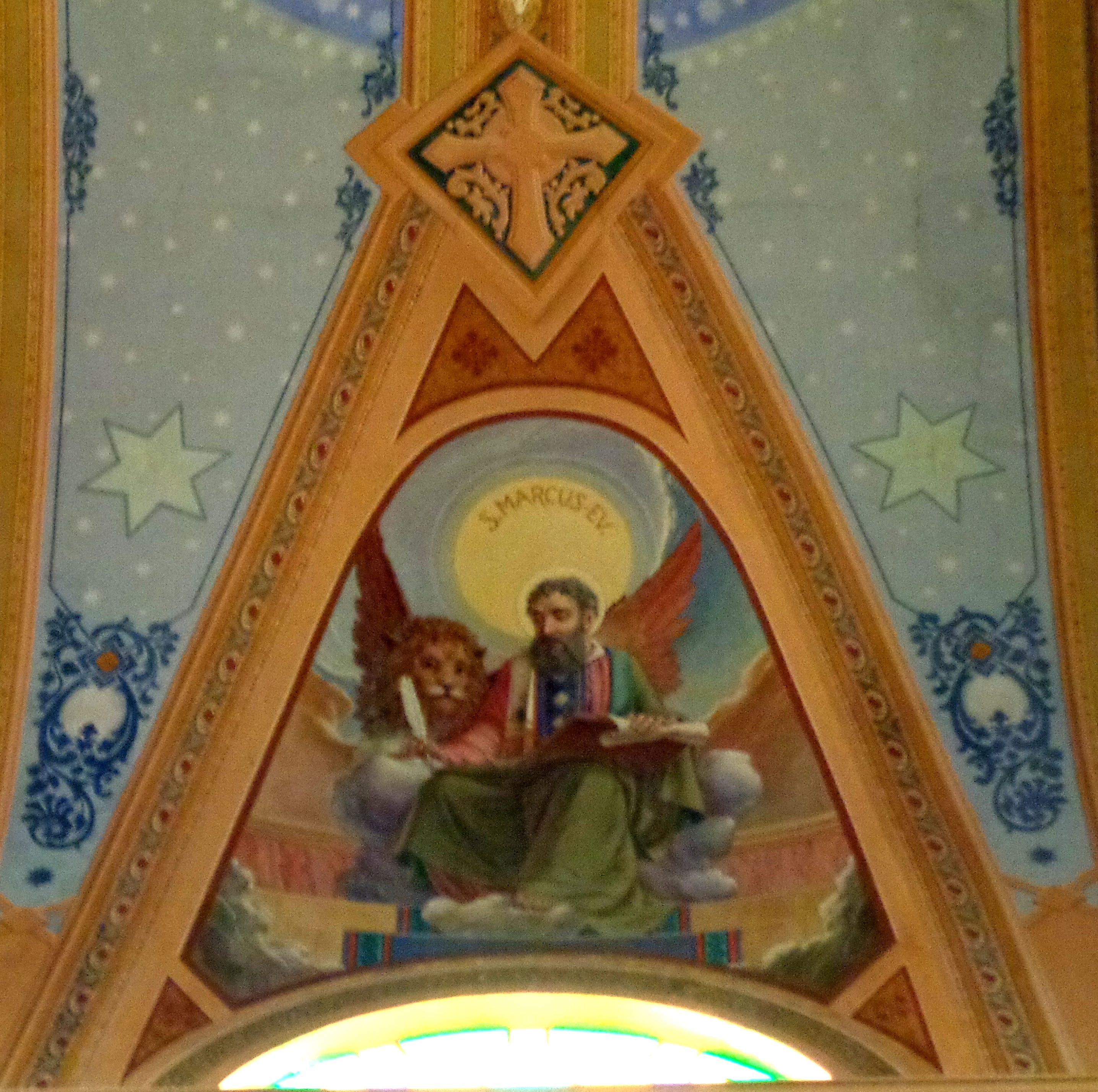 A primeira decoração em pintura mural foi realizada pelo frei Paulo Maria de Sorocaba, irmão franciscano capuchinho, entre 1917 a 1924, auxiliado por Angelino Stella.