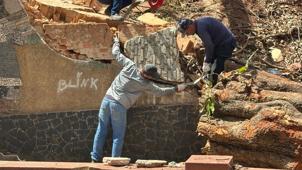 Prefeitura recolhe fragmentos do painel histórico de Clemência Pizzigatti no Parque do Mirante