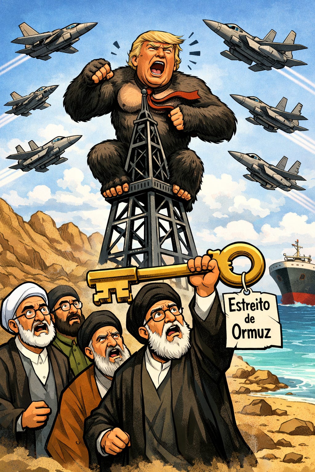 Mas Trump arregou. Disse que houve um acordo de última hora, mediado pelo Paquistão, em que o estreito de Ormuz seria reaberto, sob a coordenação do Irã. Isso mesmo, o Irã conseguiu se impor e vai dar as ordens sobre o canal.