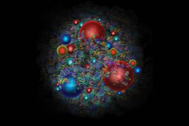 “Existem simulações em supercomputadores que demonstram que, em distâncias da ordem do tamanho do próton, os glúons passam a ter massa”, explica Gastão Krein, pesquisador do Instituto de Física Teórica da UNESP (IFT) e do ICTP-SAIFR, centro internacional de física teórica associado ao IFT. “Quando analisamos como os glúons se propagam para estabelecer as conexões entre os quarks, vemos que há uma geração de massa. Isso indica que deve existir algum mecanismo responsável por fornecer essa massa a eles”, aponta.
