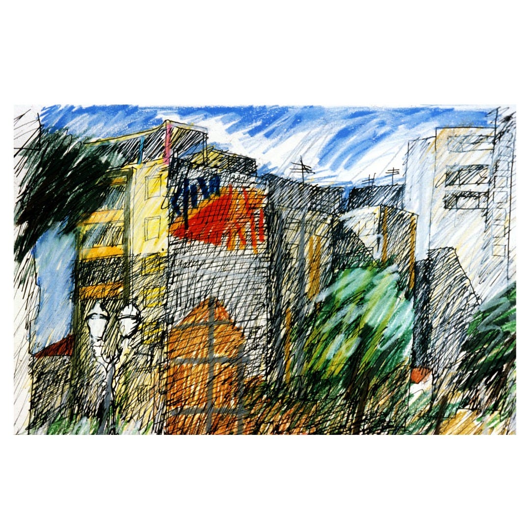 Desenho de Paulo Von Poser. Exposição “Algumas cores de Piracicaba”. 9 de novembro de 1984