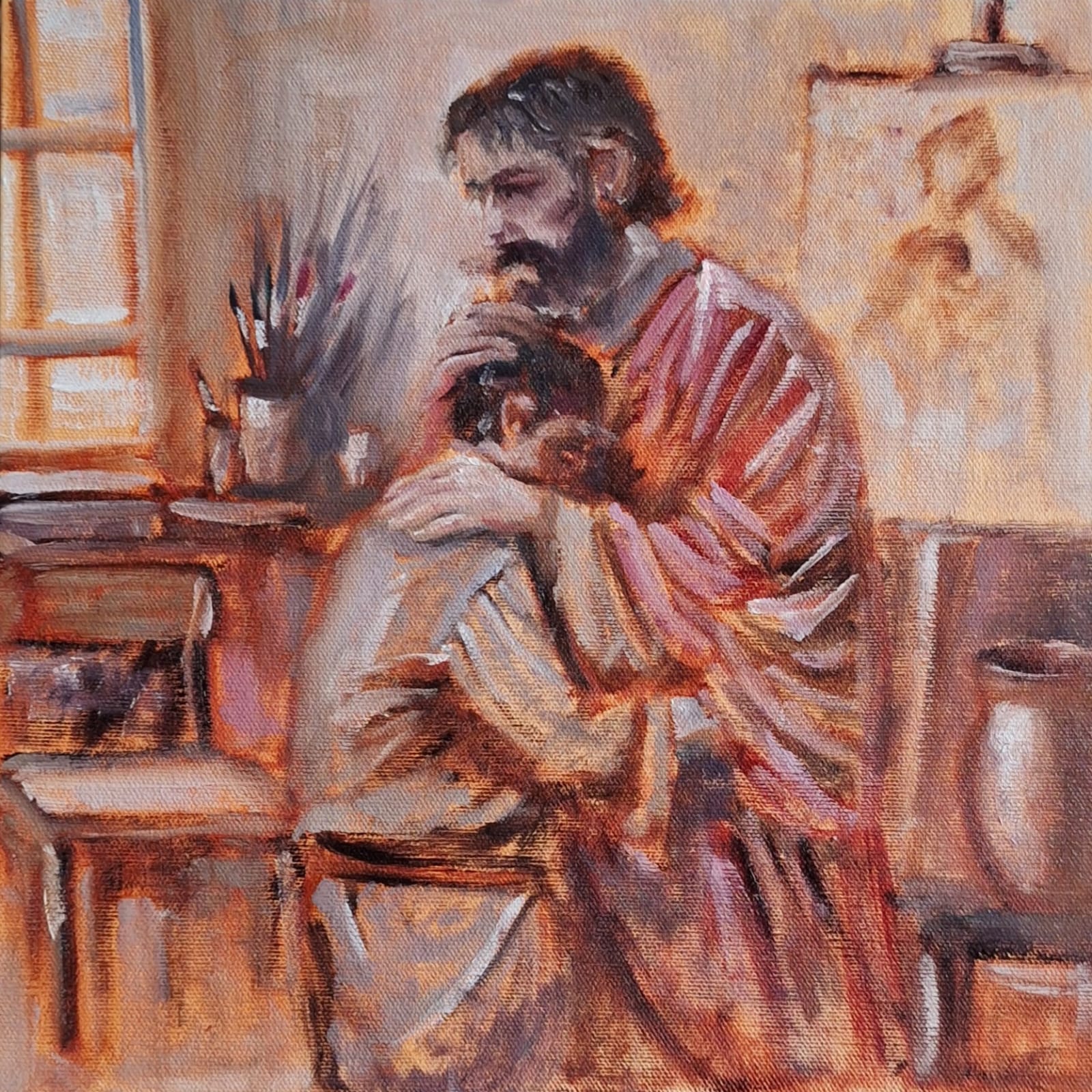 O conceito da exposição parte do ateliê como espaço simbólico. Mais do que um local de produção, o ambiente é tratado como território de criação e vida. “O sagrado não está necessariamente na temática religiosa, mas no próprio ato de ver, pintar e criar. O sagrado está no silêncio que precede a cor”, afirma o artista.