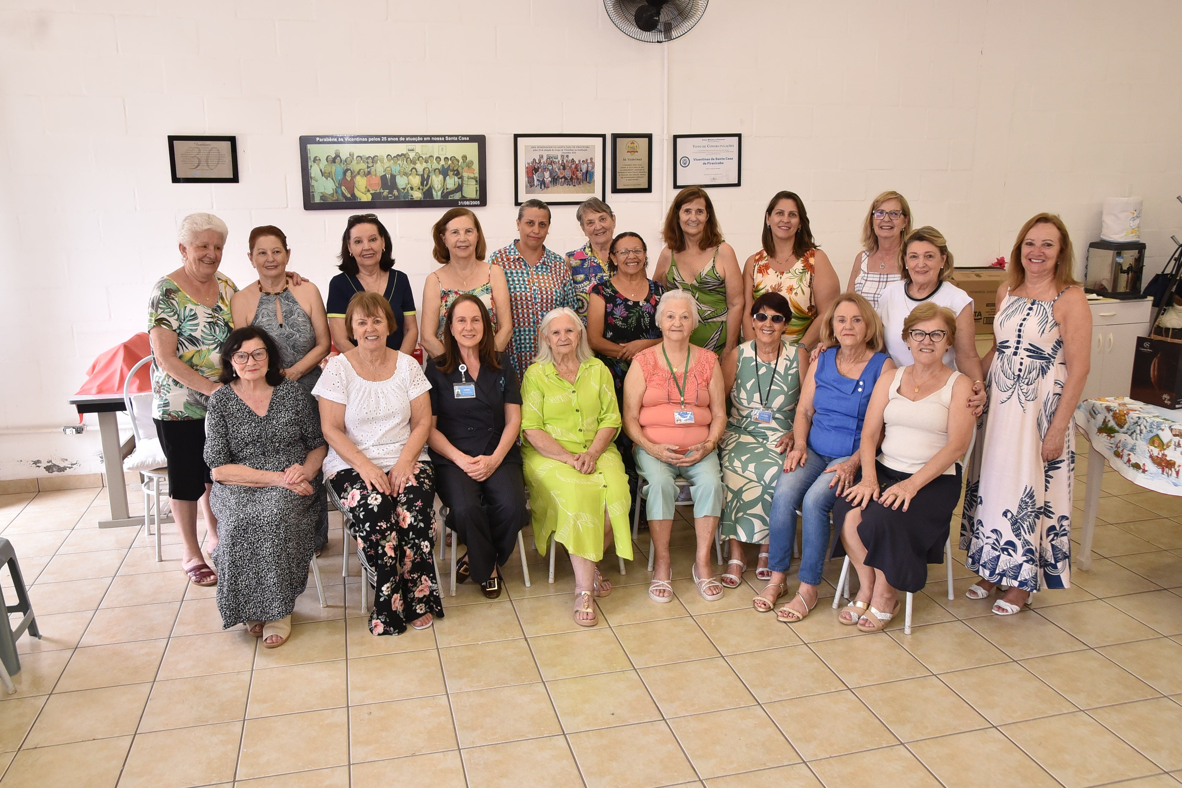 A Santa Casa de Piracicaba realizou nesta quarta-feira, 3 de dezembro, uma cerimônia para homenagear as Vicentinas que atuam na Maternidade do hospital. O grupo completa 45 anos de atividade, período em que confecciona e doa enxovais completos para bebês cujas famílias em vulnerabilidade não têm condições de adquirir roupas. O grupo também confecciona almofadas em formato de estrela, solicitadas pela equipe de enfermagem para acolher mães que perderam bebês natimortos, e bolsas para drenos destinadas a pacientes ostomizados.