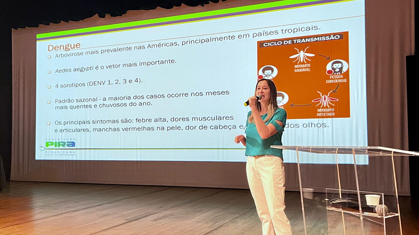 Carina Baron, gerente de Vigilância em Saúde de Piracicaba, e Fernanda Menini (na foto), enfermeira e responsável pela Vigilância Epidemiológica (VE) municipal, responsáveis pela Campanha, destacaram o equilíbrio da incidência da doença na cidade, mas reforçaram que é preciso muita cautela ainda. De janeiro até o momento, segundo dados apresentados, foram 617 casos confirmados para a doença, ante os 4.304 registros oficiais de 2024.