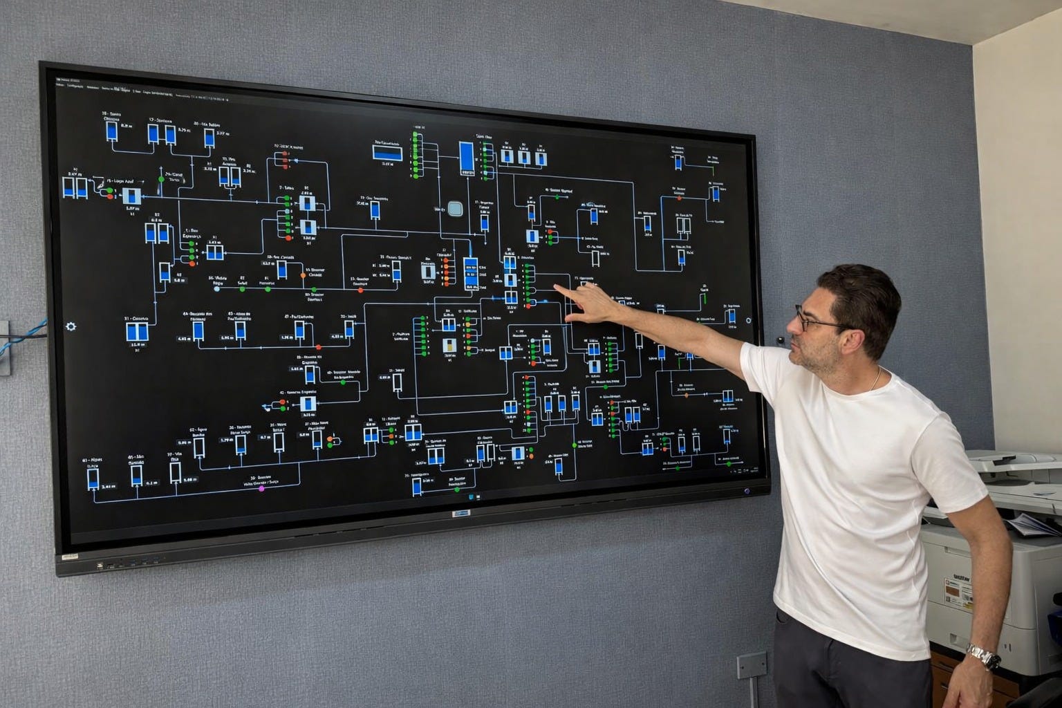 Na Sala da presidência, Ronald Pereira acompanha em tempo real os níveis dos reservatórios e produção das ETAs pelo CCO
