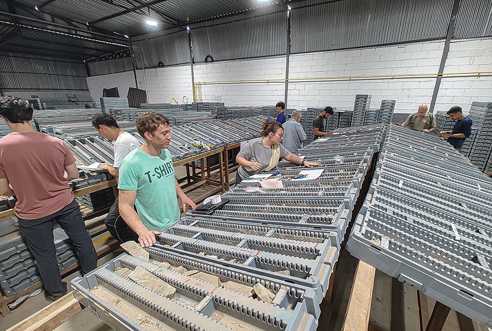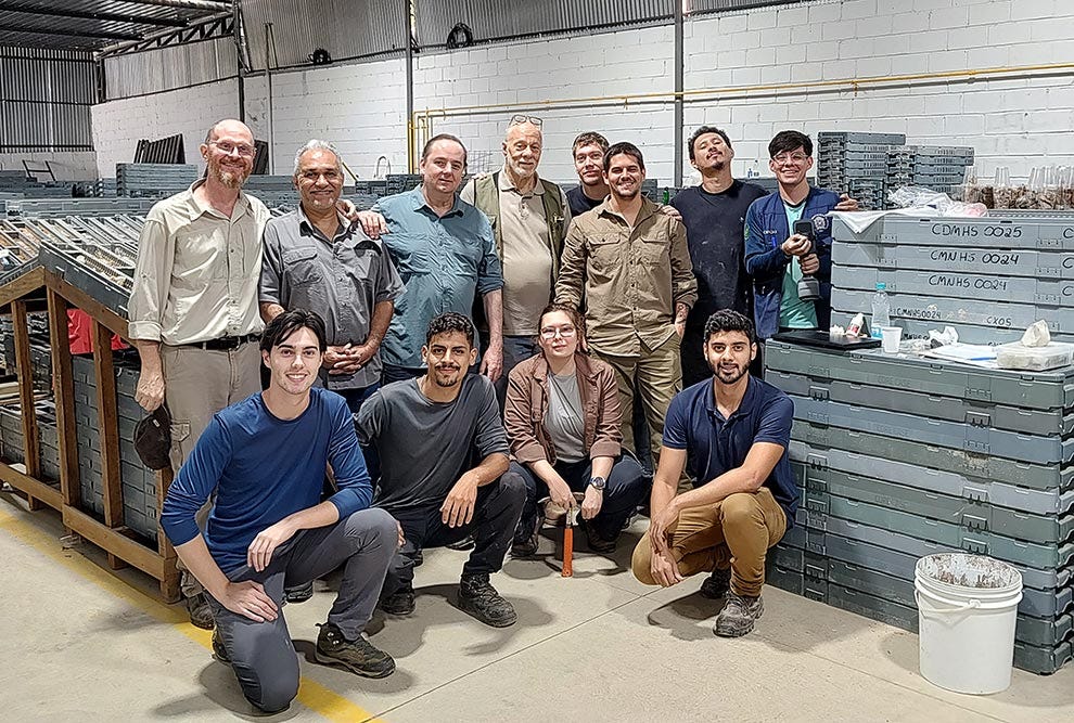 Um grupo de pesquisadores do Instituto de Geociências (IG) da Unicamp e do Instituto de Geociências da Universidade Federal do Rio de Janeiro (UFRJ) esteve em Poços de Caldas (MG) no final de fevereiro para uma atividade de campo em uma área que integra um dos maiores depósitos de elementos de terras raras (ETRs) do mundo – o depósito Caldeira, um maciço alcalino reconhecido internacionalmente por seu potencial mineral. Coordenada pelo docente do IG Diego Fernando Ducart, a atividade teve como objetivos a descrição geológica detalhada de furos de sondagem, a coleta sistemática de amostras, a aquisição de dados espectrais e geoquímicos com múltiplos equipamentos e a integração de dados com outras fontes.