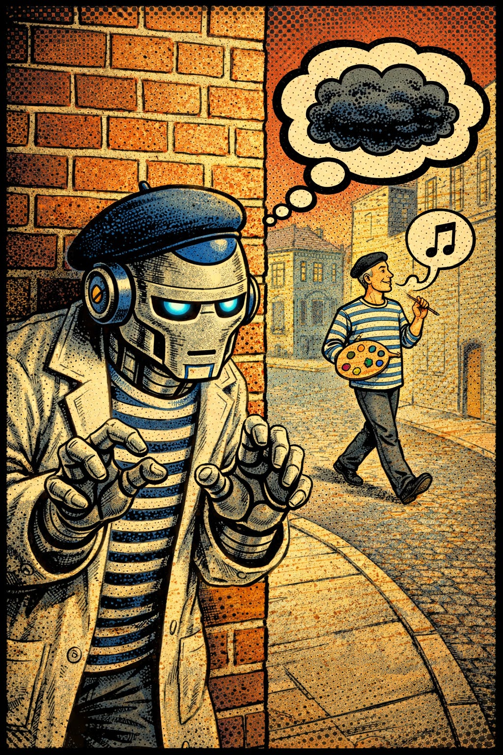 Portanto, não há duelo nenhum entre algoritmo e alma. Há, sim, “duelo” entre editores contratantes de artes, que antes utilizavam um free-lancer, uma agência de ilustração, o iStock ou o FreePik, e agora tem à disposição o Grok, o Gemini, o ChatGPT, o Midjourney e muitos outros, para gastar menos.