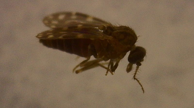 O mosquito-pólvora, porvinha ou maruim (Culicoides paraensis), transmissor do Oropouche, é três vezes menor que um pernilongo comum, tamanho ideal para atravessar mosquiteiros (imagem: Erik Jesus de Faria Santana/Wikimedia Commons)